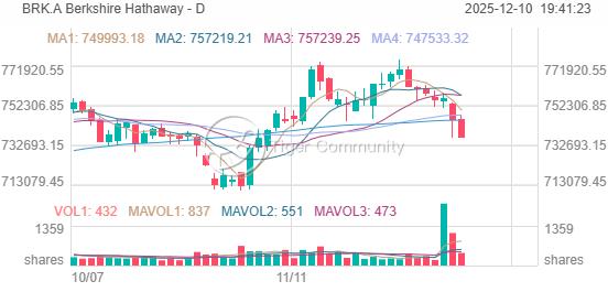 BRK.A closed at $736,300 on December 10th, down -1.18% (-$8,820).