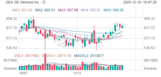 GEV closed at $625.30 on December 10, 2024 (EST), up +0.55% (+$3.40).