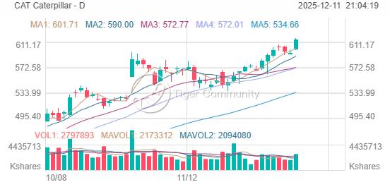 Caterpillar Inc. (CAT) Surged +3.53%: Heavy Machinery Giant Hits New 52-Week High at $617.23, Momentum Building