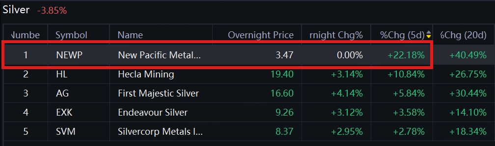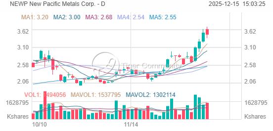 In the past five days, $New Pacific Metals Corp.(NEWP)$ 's share price has risen by 22.18%.
