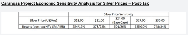 Therefore, at a silver price of US$61.48/ounce, the NPV is approximately US$2.05 billion, or US$11.15 per share, and at a silver price of US$73/ounce, the NPV is approximately US$2.52 billion, or US$13.71 per share.