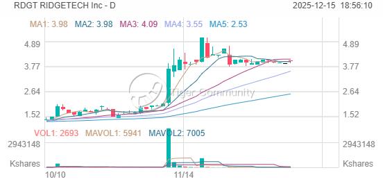 RidgeTech Inc.(RDGT) Climbs +3.32%: Low Volume Breakout Tests $4.04 Resistance, Momentum Building