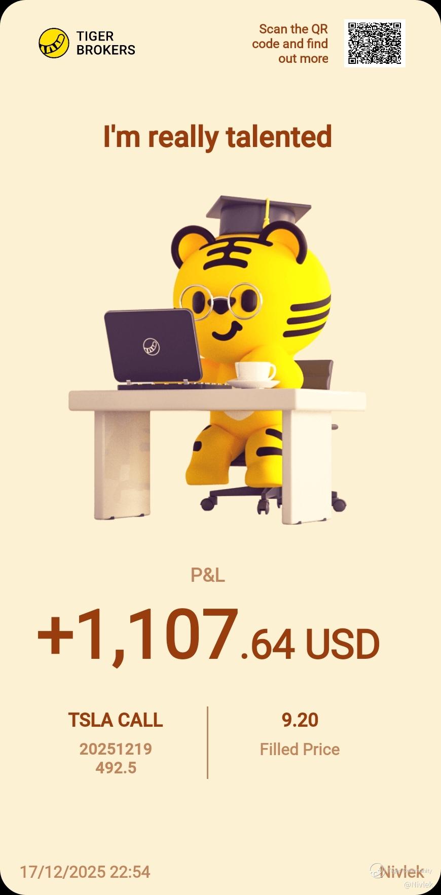 $TSLA 20251219 492.5 CALL$ Another scalp trade of the day. Hit and run at the volatile trading day. Guys be careful!