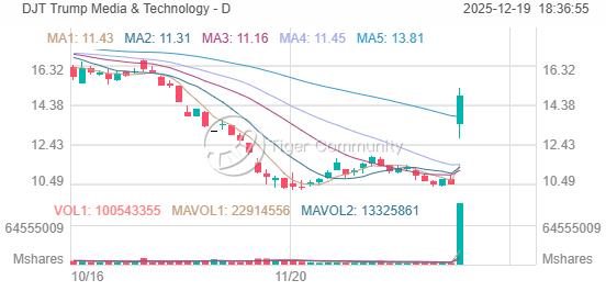DJT closed at $14.86 on December 19th, surging +41.93% (+$4.39) from previous close of $10.47.