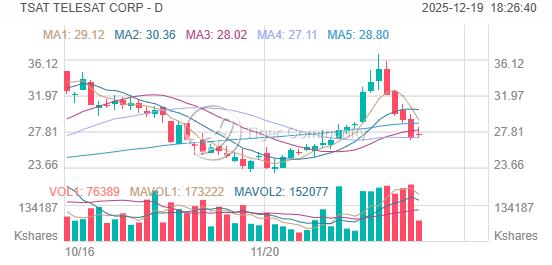 TSAT closed at $27.50 on December 19, up +1.70% (+$0.46) from the previous session.