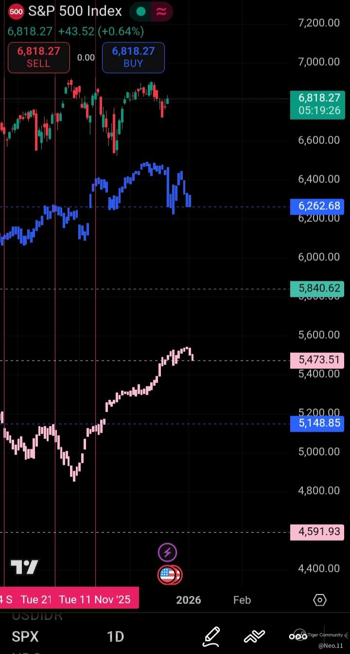 Running from cycle performance on Q2 2026 to be rise back after oversold market position in low position. With interval time frame US market index continues to get more score for new high records above 7000 (S&P 500 index)