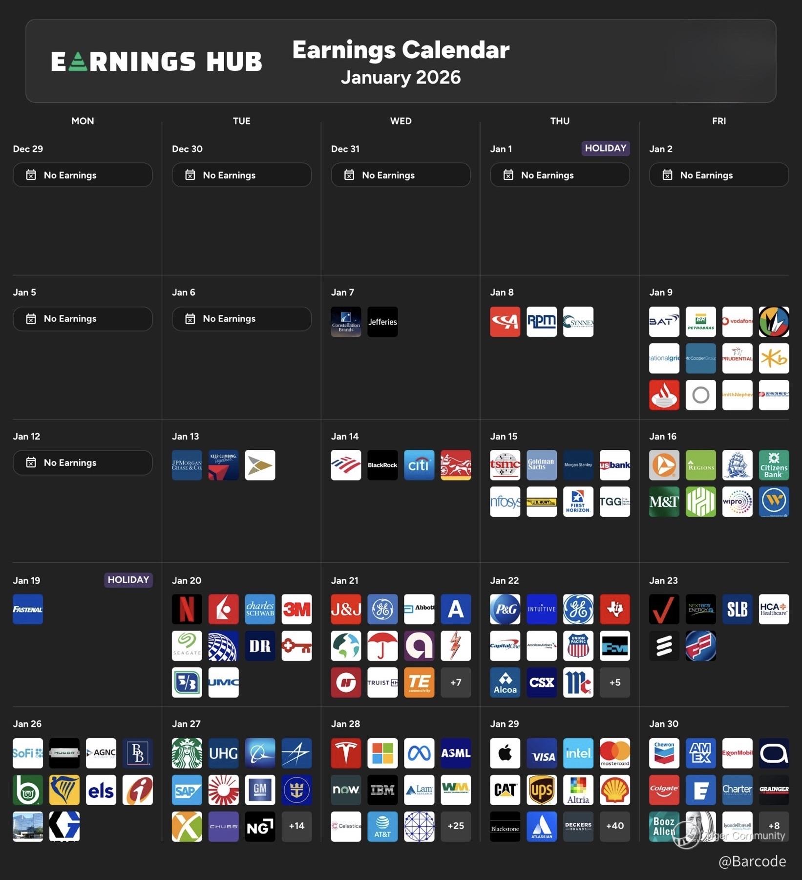 There are 0 earnings this week, but earnings season is never far away, and the January 2026 calendar ramps hard once we’re through the holiday tape.
