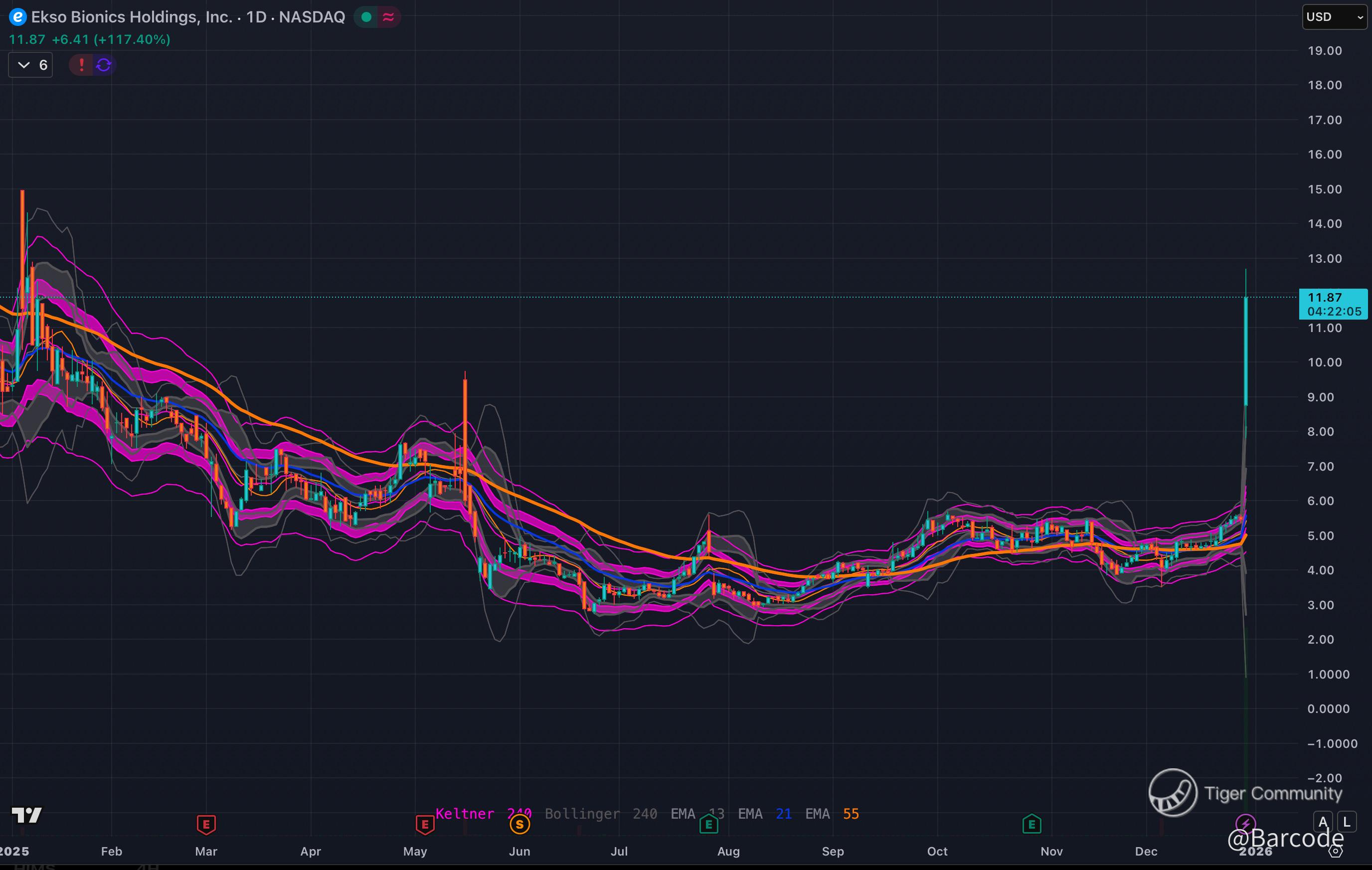 Iโm not chasing $EKSO after a headline-driven surge. This transaction may change the long-term trajectory, but price has already reacted aggressively. For me, discipline means waiting for a pullback into the channel and watching how structure develops once volatility settles.
