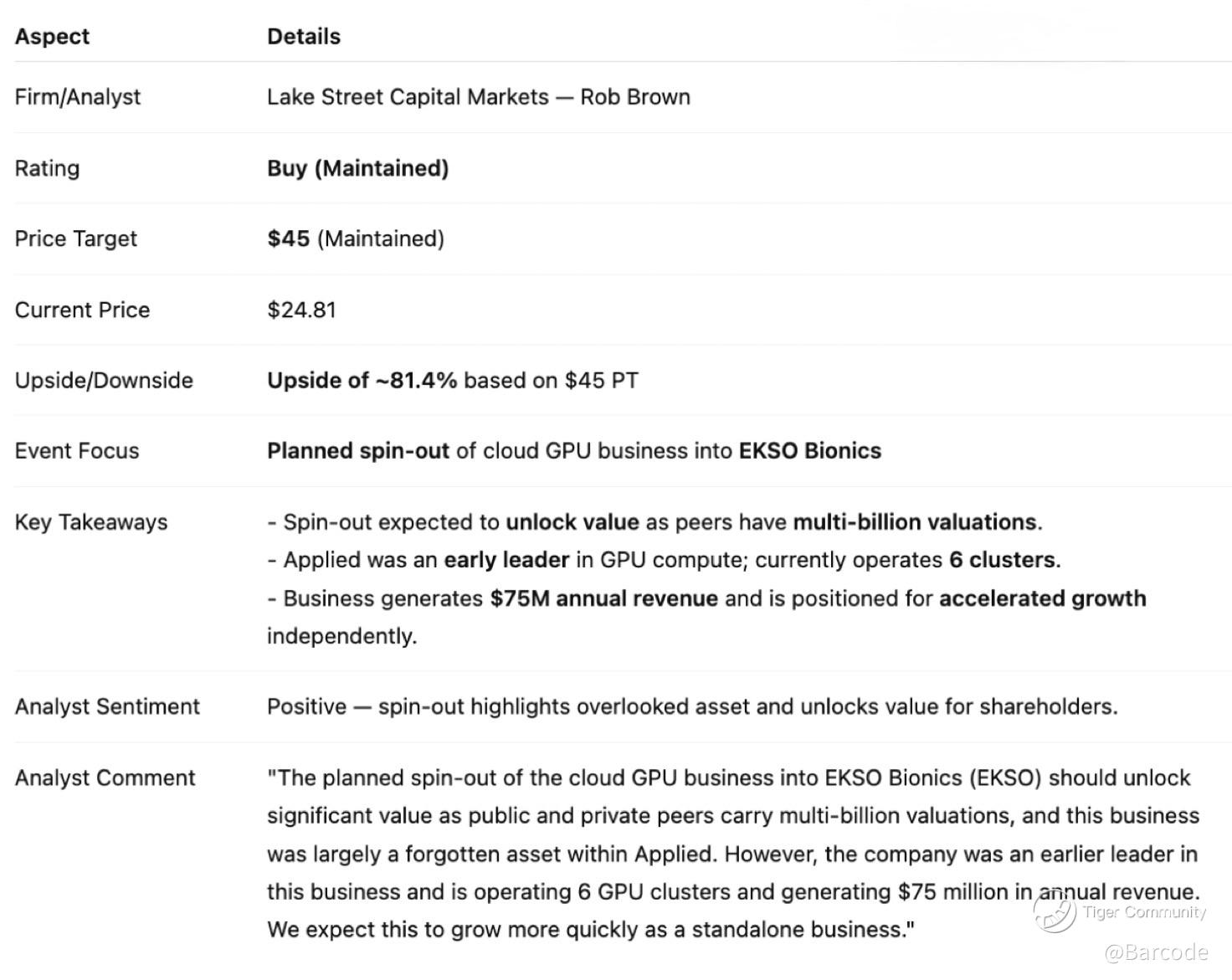 Sell-side framing has sharpened since the announcement. Lake Street reiterates Buy on $APLD with a $45 price target, explicitly citing value unlock from the GPU spin-out. Roth MKM raised its target to $56, emphasising that pure-play AI compute platforms trade on materially higher revenue multiples than blended infrastructure entities.