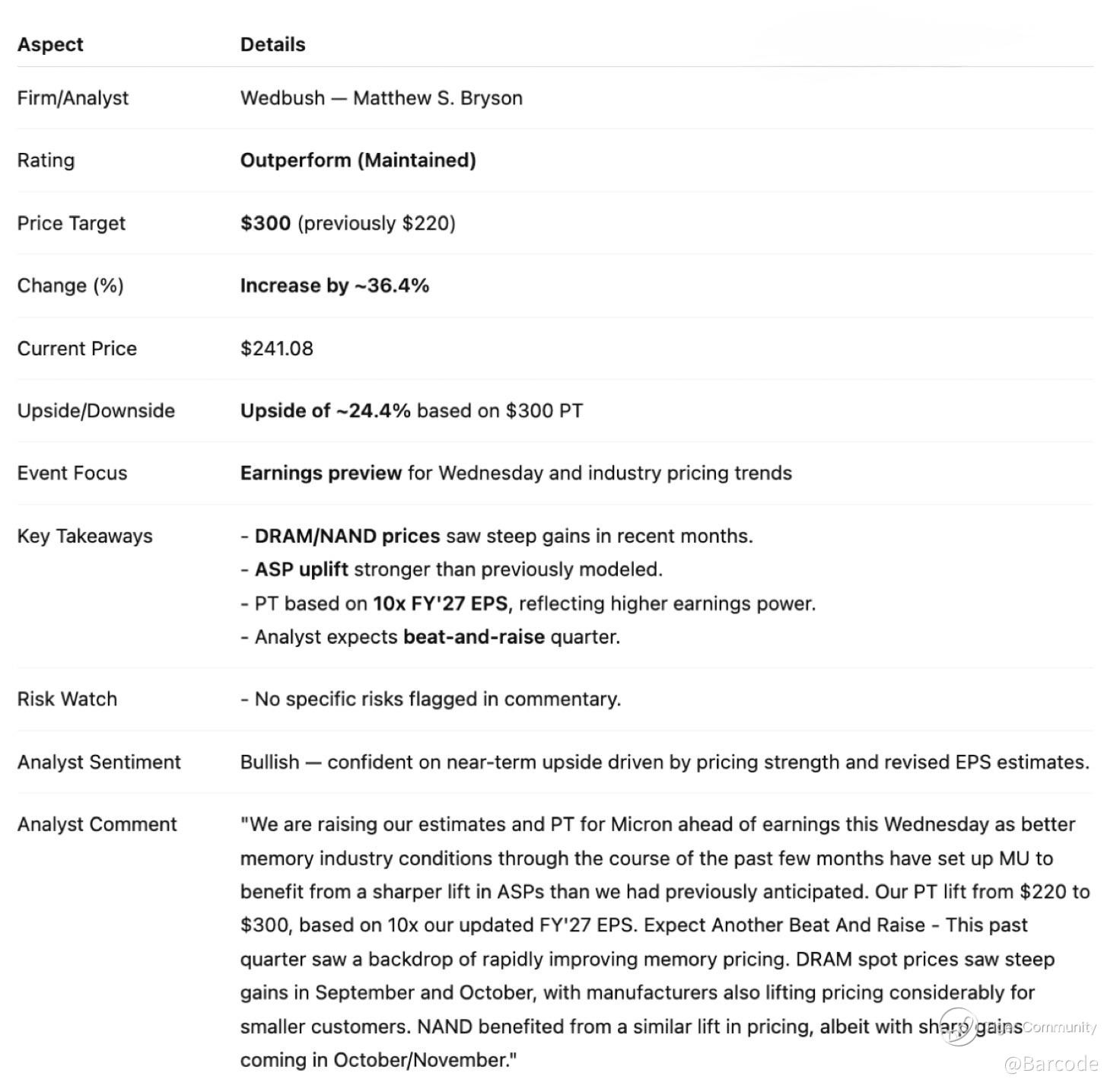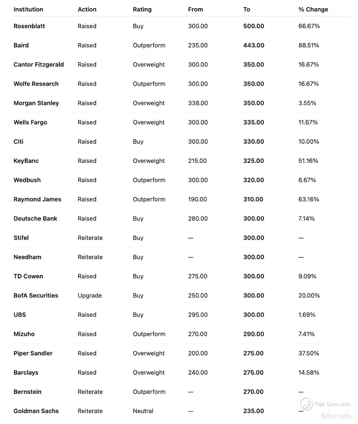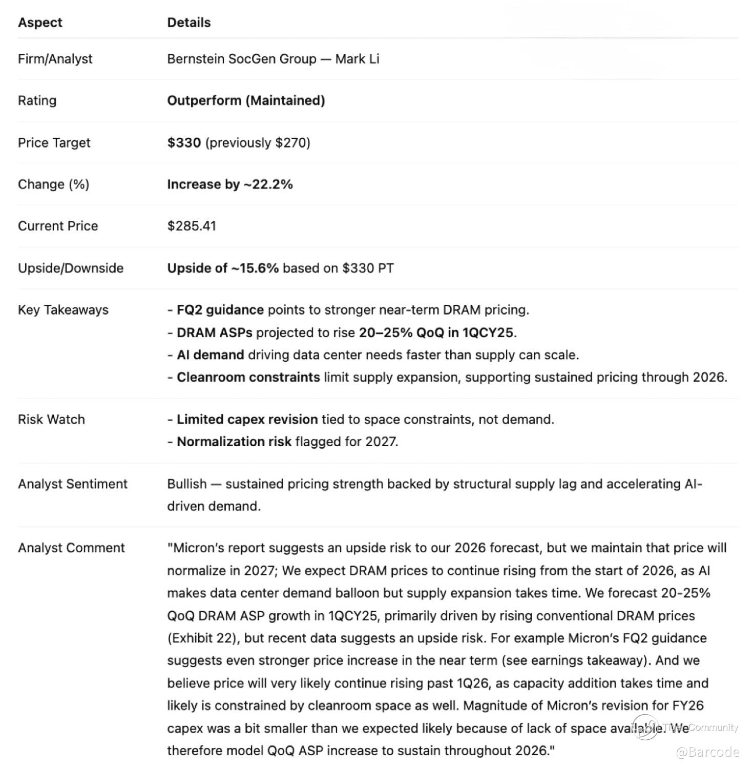 Bernstein SocGen reiterated Outperform and raised its price target to $330 from $270. The adjustment was driven by core drivers, not price momentum.