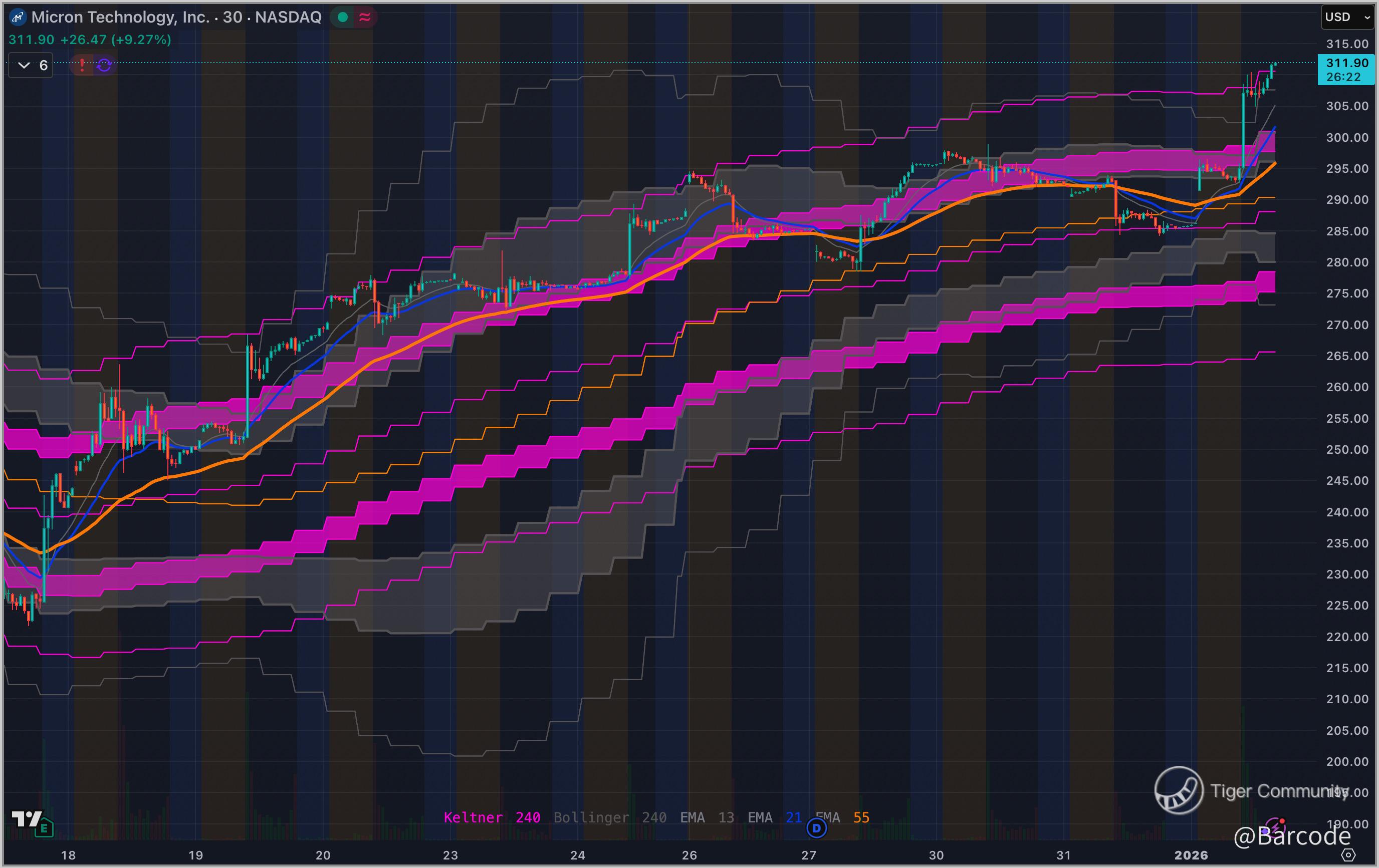 This read on $Micron Technology(MU)$ makes sense when you look at momentum and structure together. Reminds me of $Advanced Micro Devices(AMD)$ during early data centre repricing. Support keeps holding, resistance gets absorbed, and flow confirms it’s not retail driven.