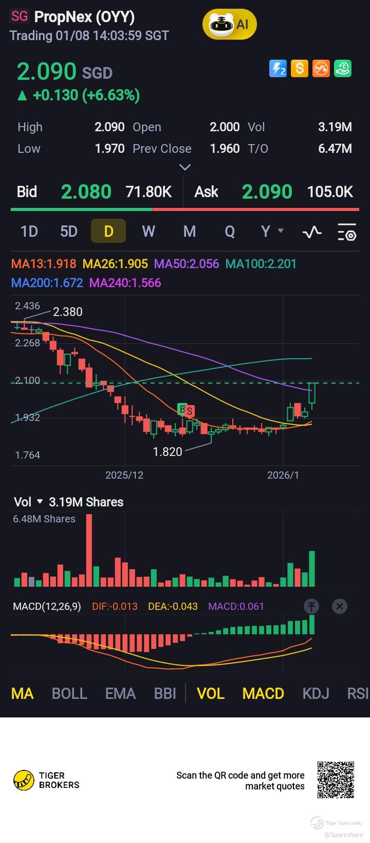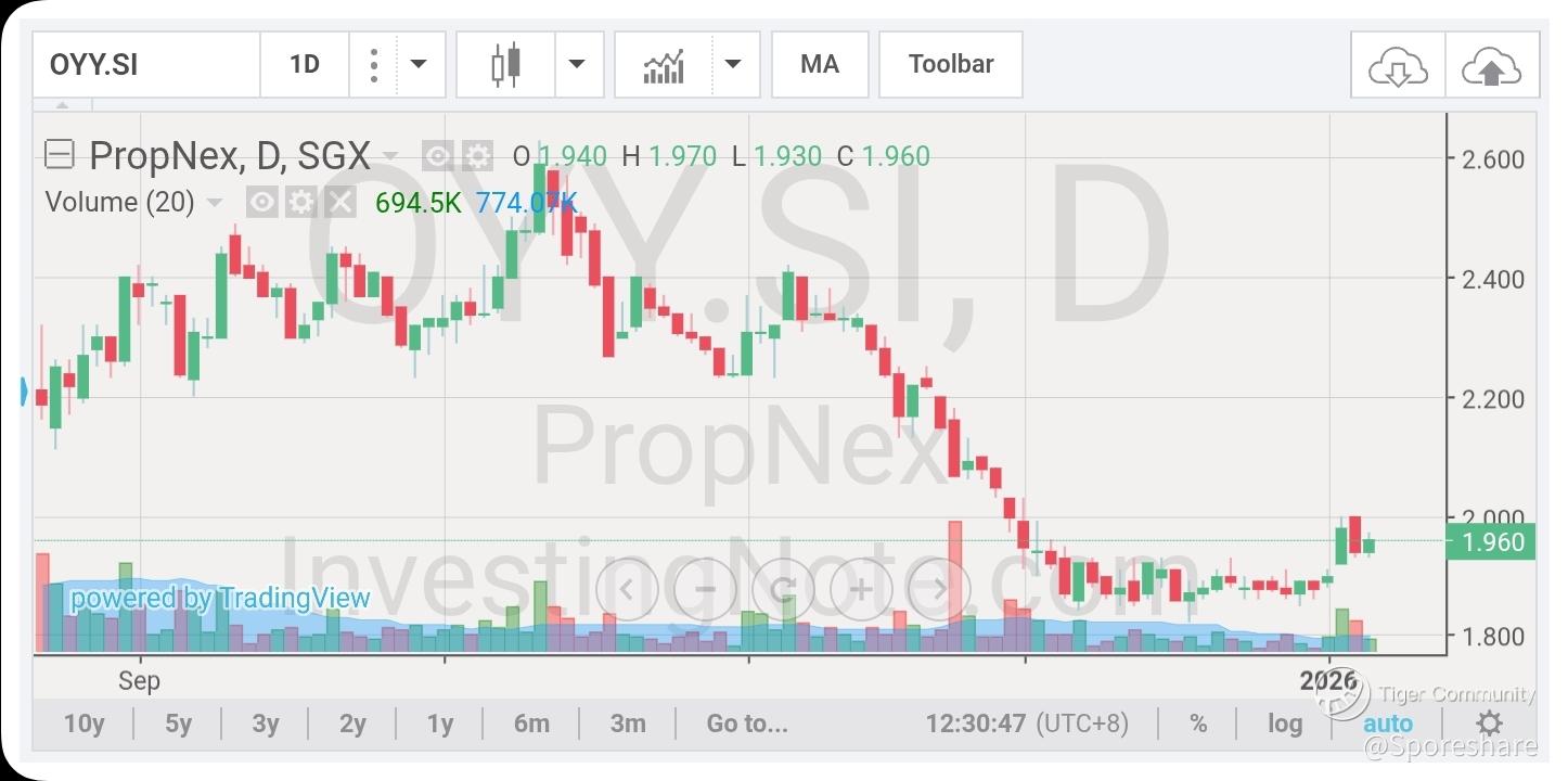 Propnex - She had managed to bounce-off from 1.85 and rises higher to touch 2.00, this is rather bullish!