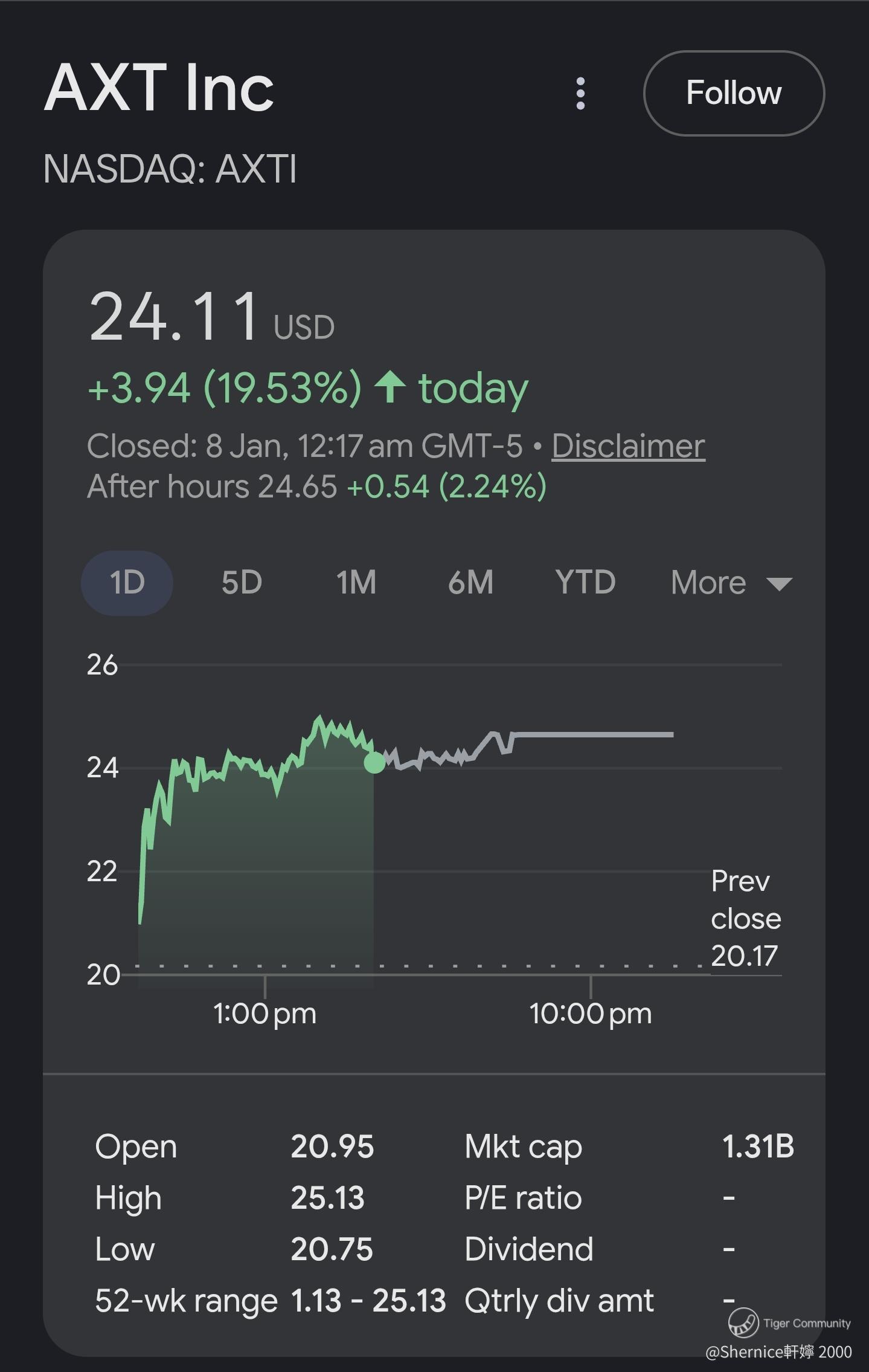 And the best part? $AXT Inc(AXTI)$ share price keep surging quietly, like ninja mode — until one day it becomes high enough for everyone to go, “Eh, why this stock suddenly so chio?!”