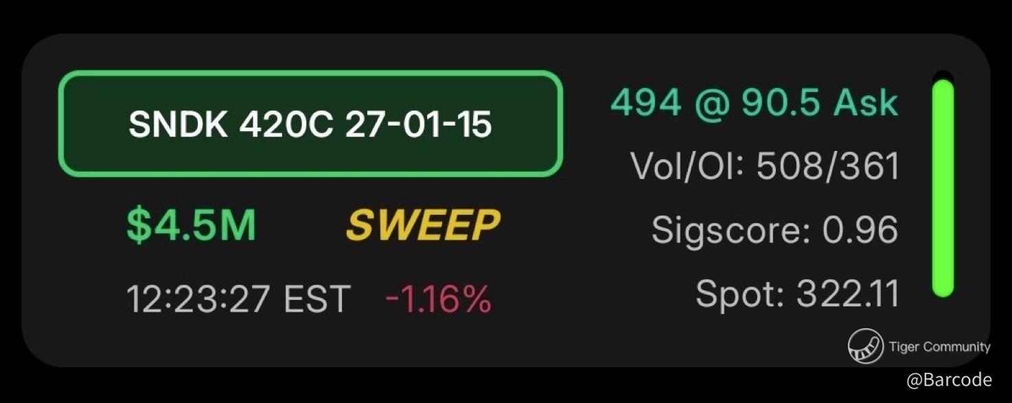 $SNDK down 10%. $SNDK massive leap bull spotted for $4.5M ๐