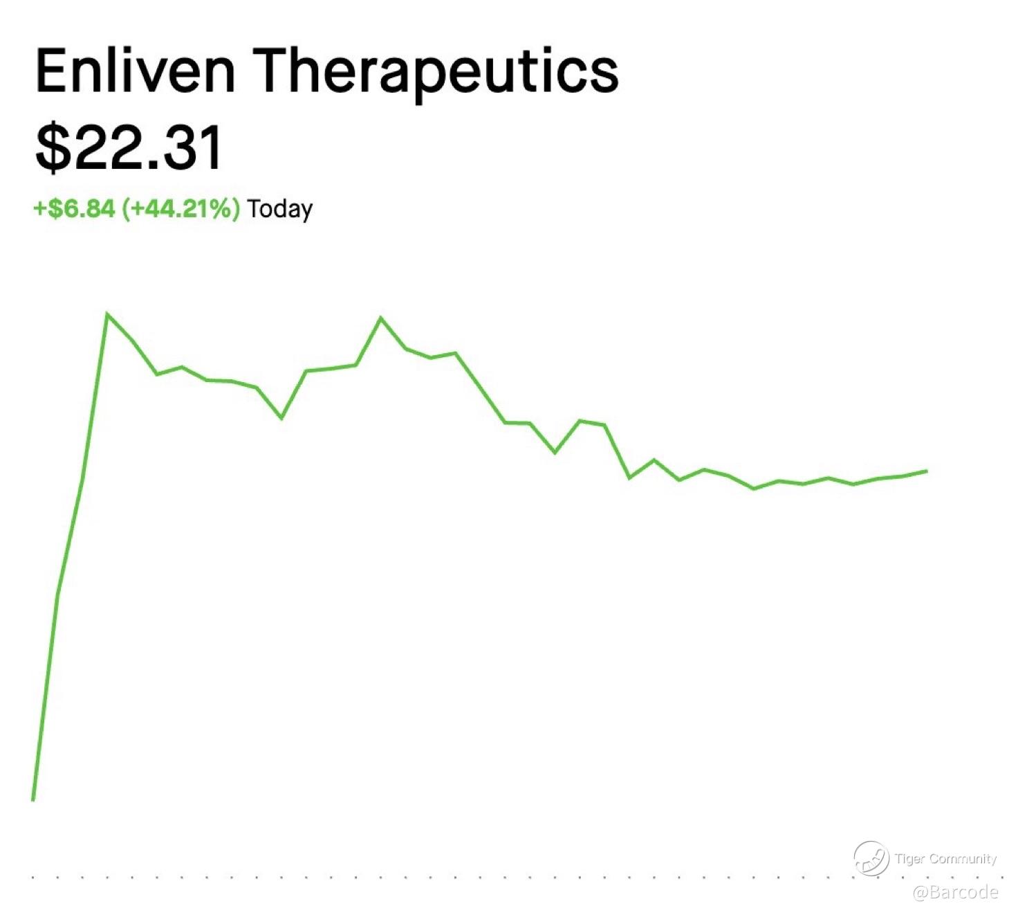 $Enliven Treateutics(ELVN)$ $Terns Pharmaceuticals, Inc.(TERN)$ $Kura Oncology(KURA)$ I’m watching a classic biotech squeeze unfold in Enliven Therapeutics $ELVN. Shares just ripped +44% to fresh 52 week highs after early Phase 1b leukemia data for ELVN-001 surprised to the upside. What matters here is context. Even after today’s vertical move, the stock is only about +2.5% y/y, which tells me this is a sentiment reset, not a late-stage blow off. A long period of dead money met with credible data is exactly how violent re-ratings start. Volume confirms it, momentum traders are pressing, and shorts are scrambling to reprice risk. This is how broken charts turn into crowded trades fast.