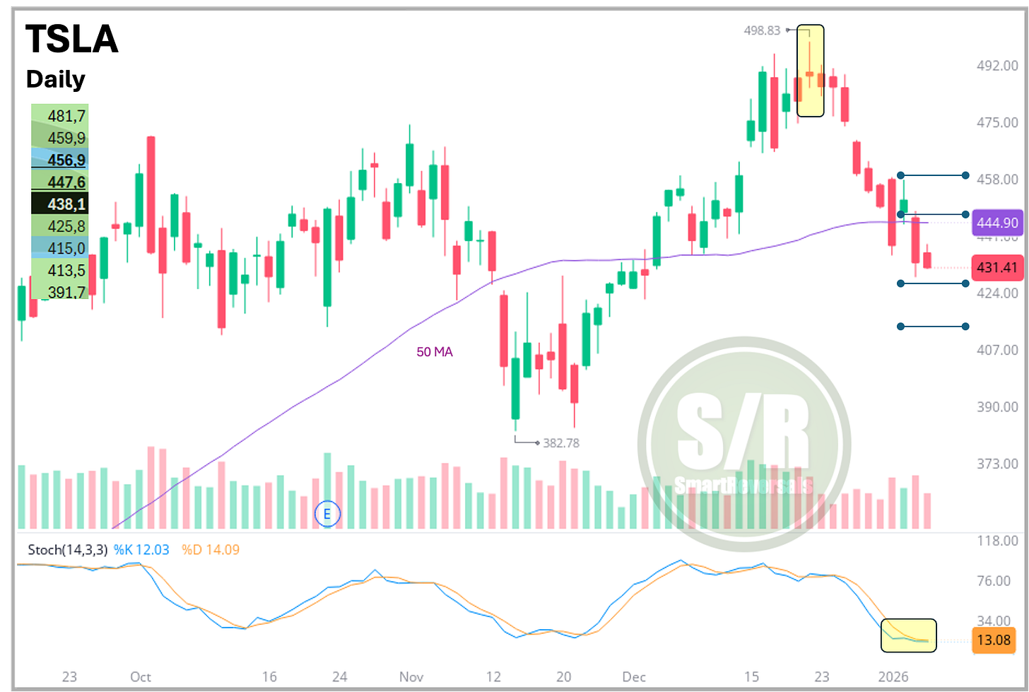 I’ve been bearish on $Tesla Motors(TSLA)$ during the last two weeks, and the stock is falling with conviction. High volatility assets like TSLA, NVDA, PLTR or BTC can present significant spikes in the middle of a broader bearish formation (remember that I use weekly charts in the Weekly Compass).