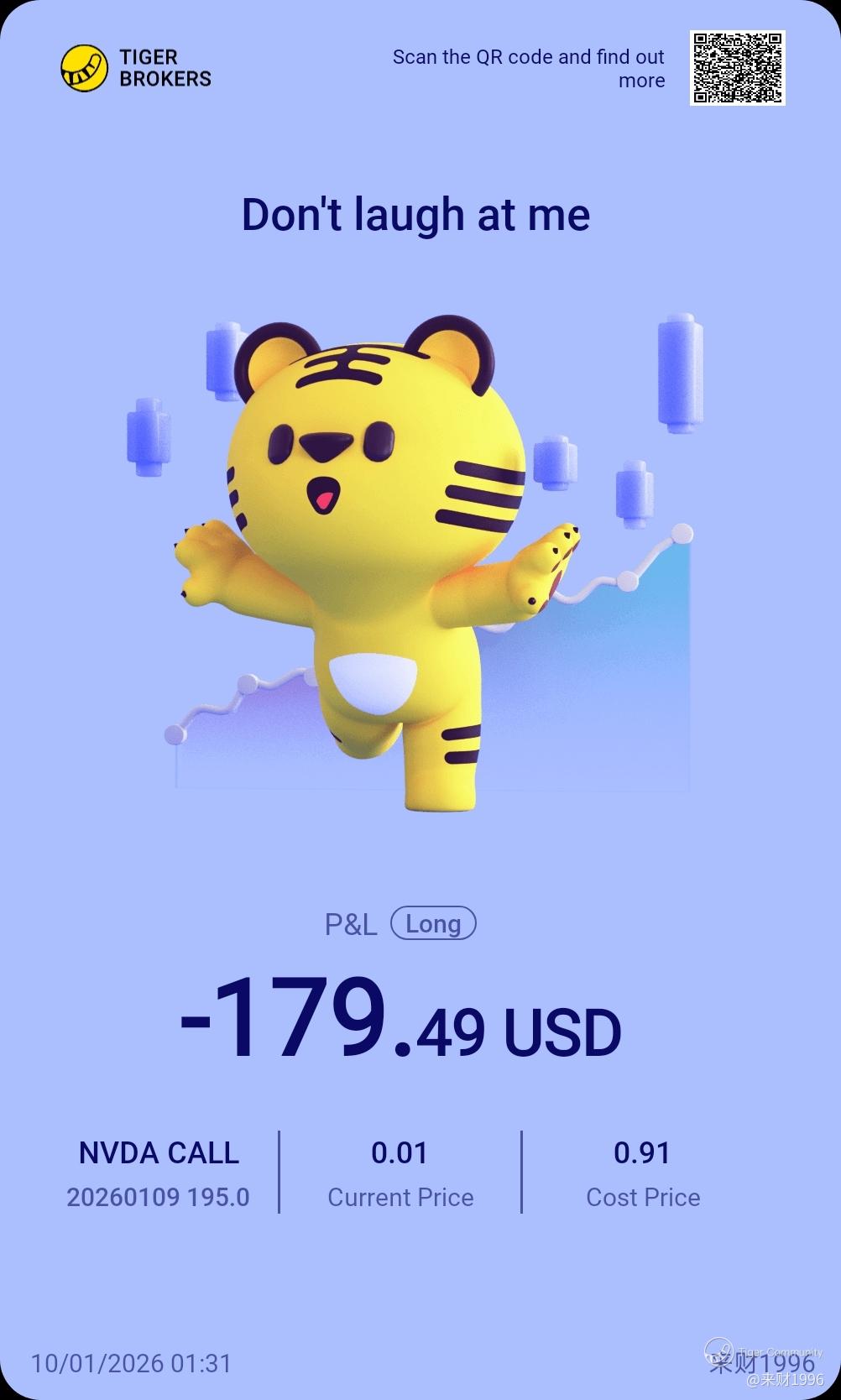 $NVDA 20260109 195.0 CALL$ when options profit, it should be sold. I had chance to profit about 150 usd. But again I got greedy and decided to hold longer. The very next day NVDA dumped... Horrible decision and probably unlucky.