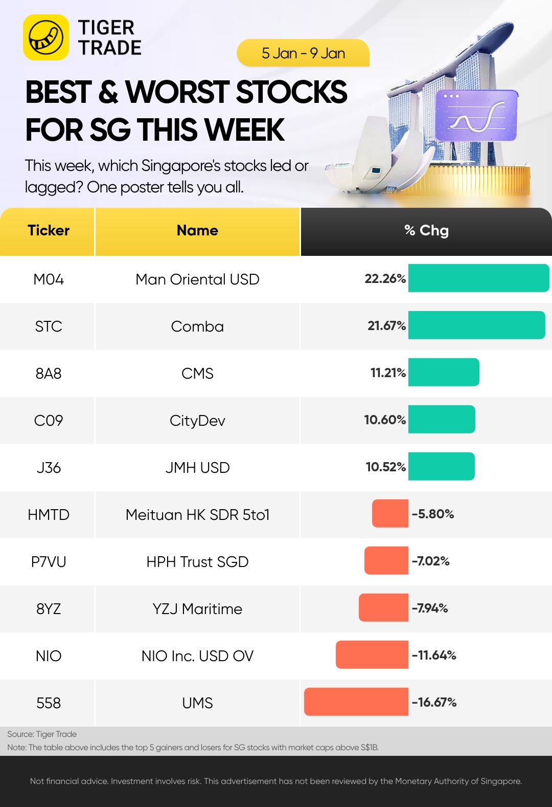 $(M04.SI)$ $(STC.SI)$ $(8A8.SI)$ $(C09.SI)$ $(J36.SI)$ $(558.SI)$ $(NIO.SI)$ $(8YZ.SI)$ $(P7VU.SI)$ $(HMTD.SI)$Disclaimer: Investing carries risk. This is not financial advice. The above content should not be regarded as an offer, recommendation, or solicitation on acquiring or disposing of any financial products, any associated discussions, comments, or posts by author or other users should not be considered as such either. It is solely for general information purpose only, which does not consider your own investment objectives, financial situations or needs. TTM assumes no responsibility or warranty for the accuracy and completeness of the information, investors should do their own research and may seek professional advice before investing.