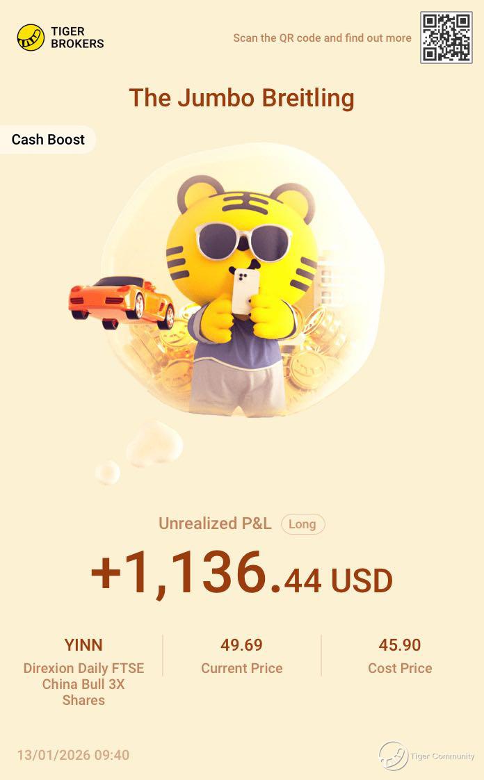 $Direxion Daily FTSE China Bull 3X Shares(YINN)$ This run on YINN has been wild! Riding the China market’s rebound with 3× leverage really delivered — the gains were exciting, and even with the big swings, locking in profits felt awesome!