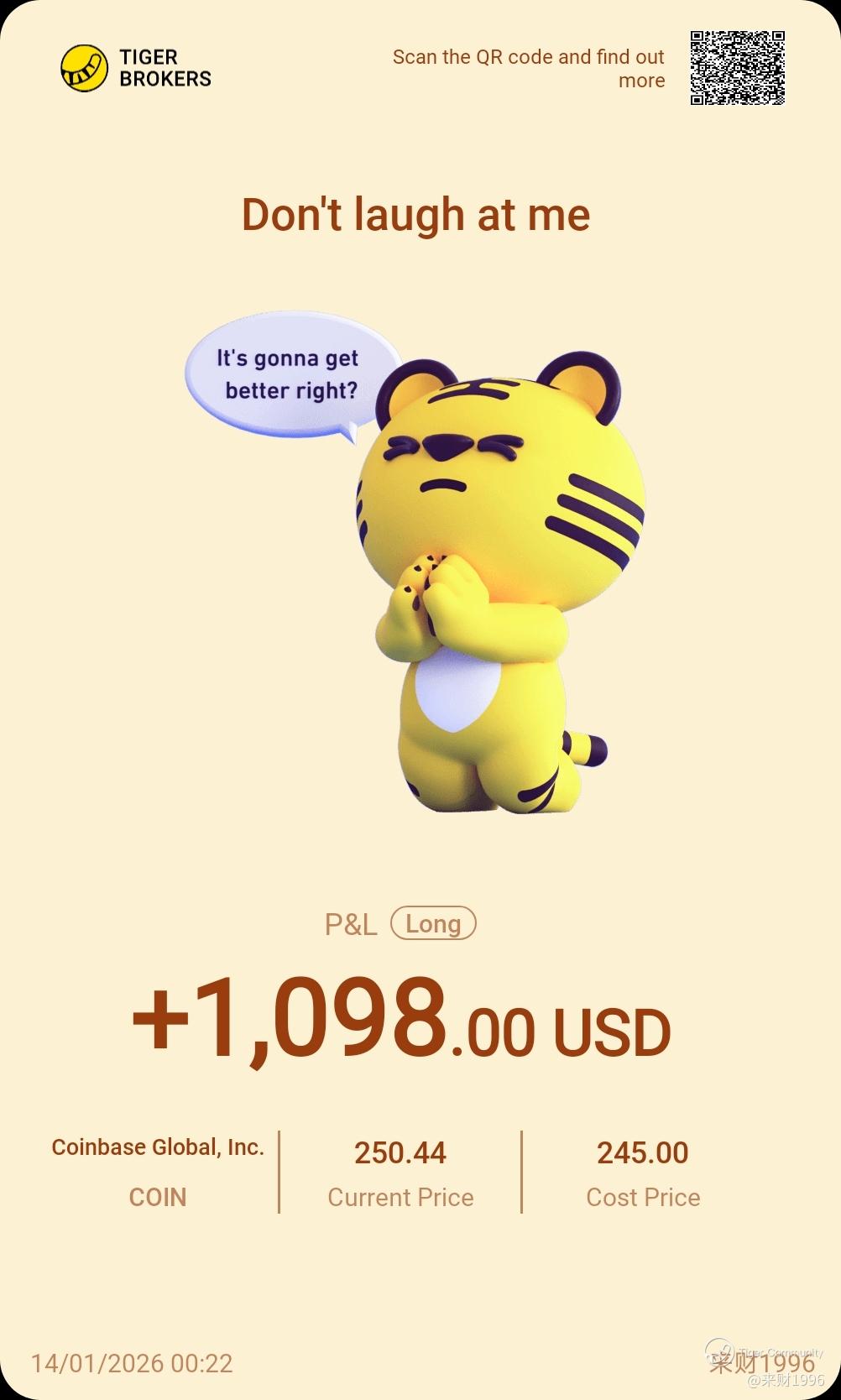 $Coinbase Global, Inc.(COIN)$ This stock is really volatile. I always want to remind myself to take profits when it's available. Never greed.