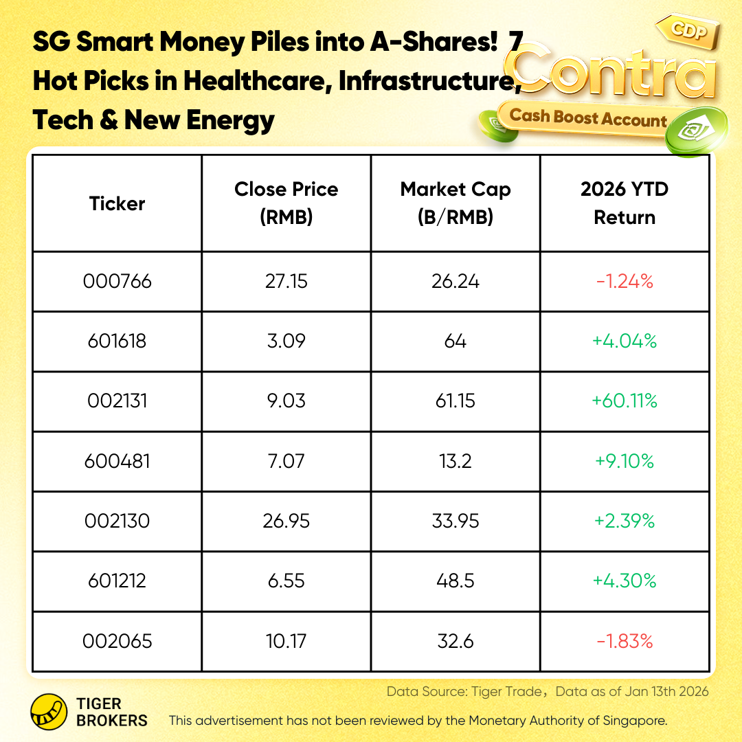 SG Smart Money Piles into 7 A-Shares: Healthcare, Infrastructure, Tech & New Energy in Focus