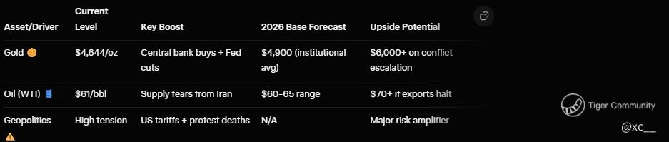 Bottom line: Gold's not just riding the wave; it's creating a tsunami. If US-Iran spirals, $6,000 isn't a dream—it's destiny. Oil's along for the ride, but gold's the star. Stack up, stay vigilant, and watch the fireworks! 💰🌐🚀