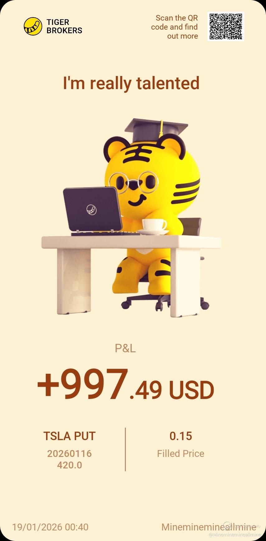 $TSLA 20260116 420.0 PUT$ Weekly income. Premiums dropped to 15cents, so I closed options early on Thurs and sold new put options for next week.