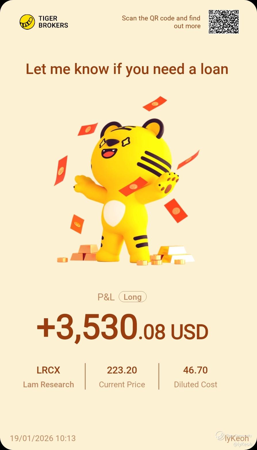 $Lam Research(LRCX)$ it quietly overtaking my nvidia position as most profitable stocks... let test 230