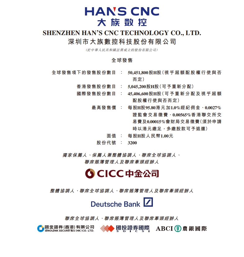 A股( $大族數控(301200)$ )已有較大市值,H股定價需關注其對A股股價的折讓幅度是否足夠吸引。