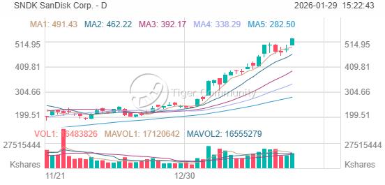 SanDisk Surges 9.6%, Tests 52-Week High at $531