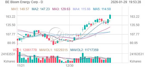 Bloom Energy Corp (BE) Surged +8.59%: Hits New 52-Week High at $167.57, Bullish Momentum Intact