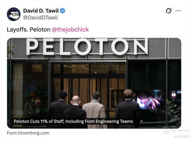 Peloton looks to cut about 11% of its workforce. - Bloomberg