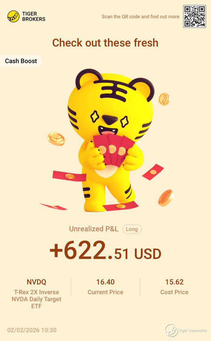$T-Rex 2X Inverse NVDA Daily Target ETF(NVDQ)$ Having pulled back significantly from its highs, it’s now consolidating quietly in a lower zone — a fitting area to build a position gradually.