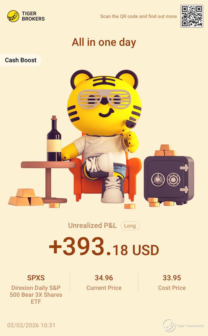 $Direxion Daily S&P 500 Bear 3X Shares ETF(SPXS)$ When the market starts swaying, SPXS always shows up. Caught the downturn wave with this triple-leveraged short ETF — clean move, nice gain. Never hold too long, just ride the momentum and bank it. Sometimes the best trade is against the crowd.