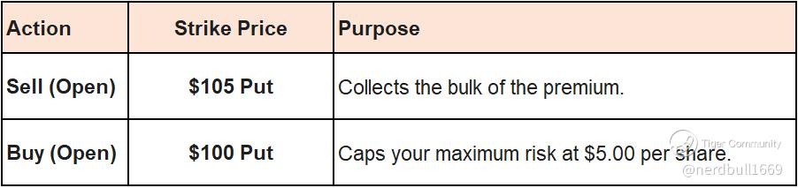 To maximize safety while collecting decent premium, you typically want to set your Short Put at or slightly below the lower bound of the expected move ($103.50).