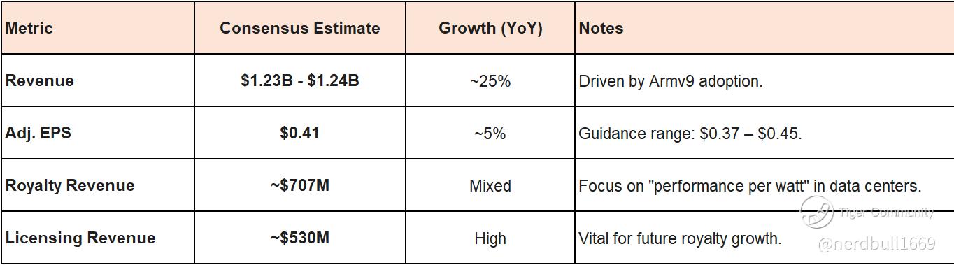 Royalty Expansion: Management has signaled that royalty revenue should grow just over 20% YoY. A beat here would signal that ARM is successfully taking market share from traditional x86 providers (Intel/AMD).