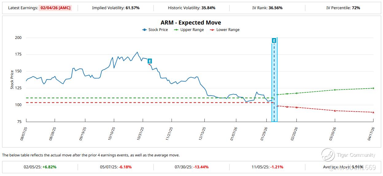 As of February 3, 2026, ARM's stock is trading around $107, and the options market is pricing in a significant swing.