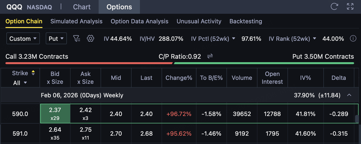 📈 Occurrence conditions: QQQ expiration price ≥ 590 USD