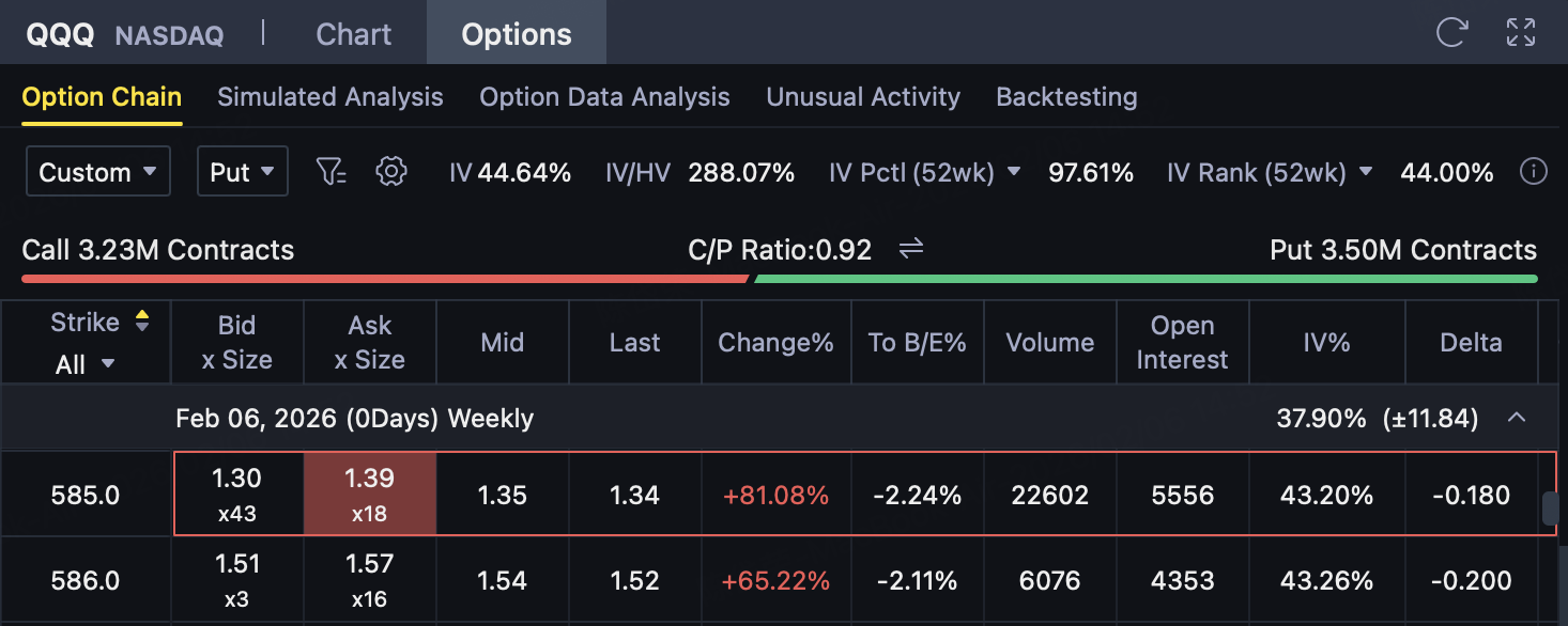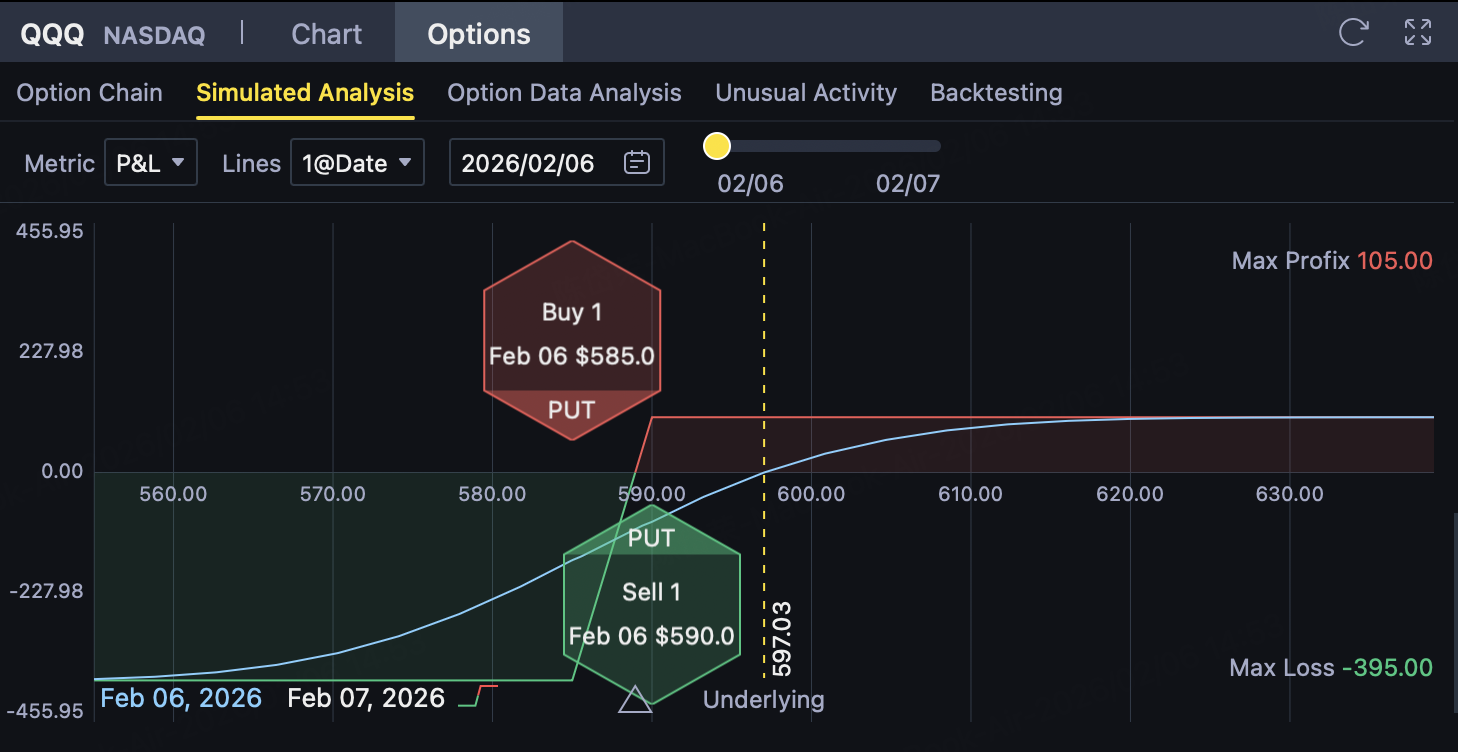 Compared with selling 590 Put naked, the risk is clearly capped by 585 Put