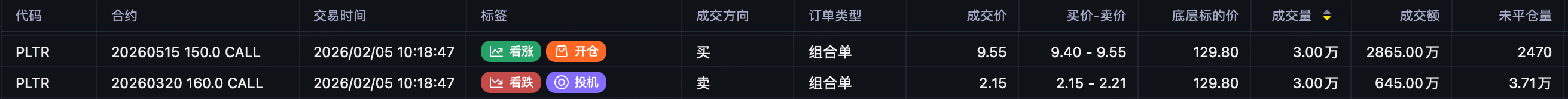 Large order rolled: from the March 20th 160 call $PLTR 20260320 160.0 CALL$ to the May 15th 150 call $PLTR 20260515 150.0 CALL$ .