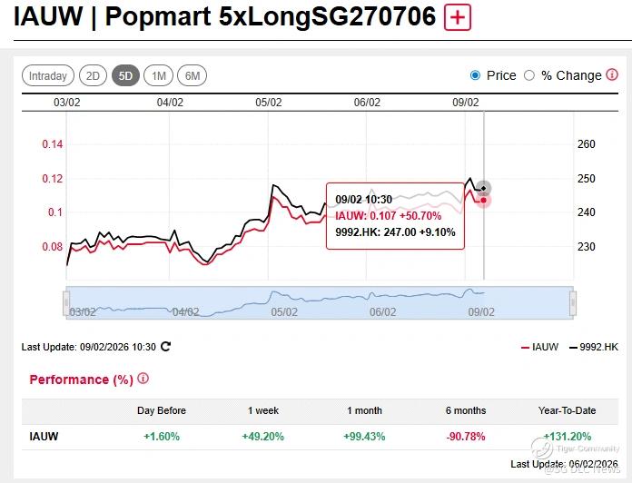 Tracking the underlying, the $Popmart 5xLongSG271216(FNYW.SI)$ rallied about 40%, while the $Popmart 5xShortSG270706(ZBTW.SI)$ declined about -32%.