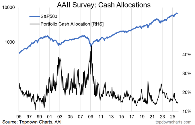 2. Investor cash allocations are at cycle lows.