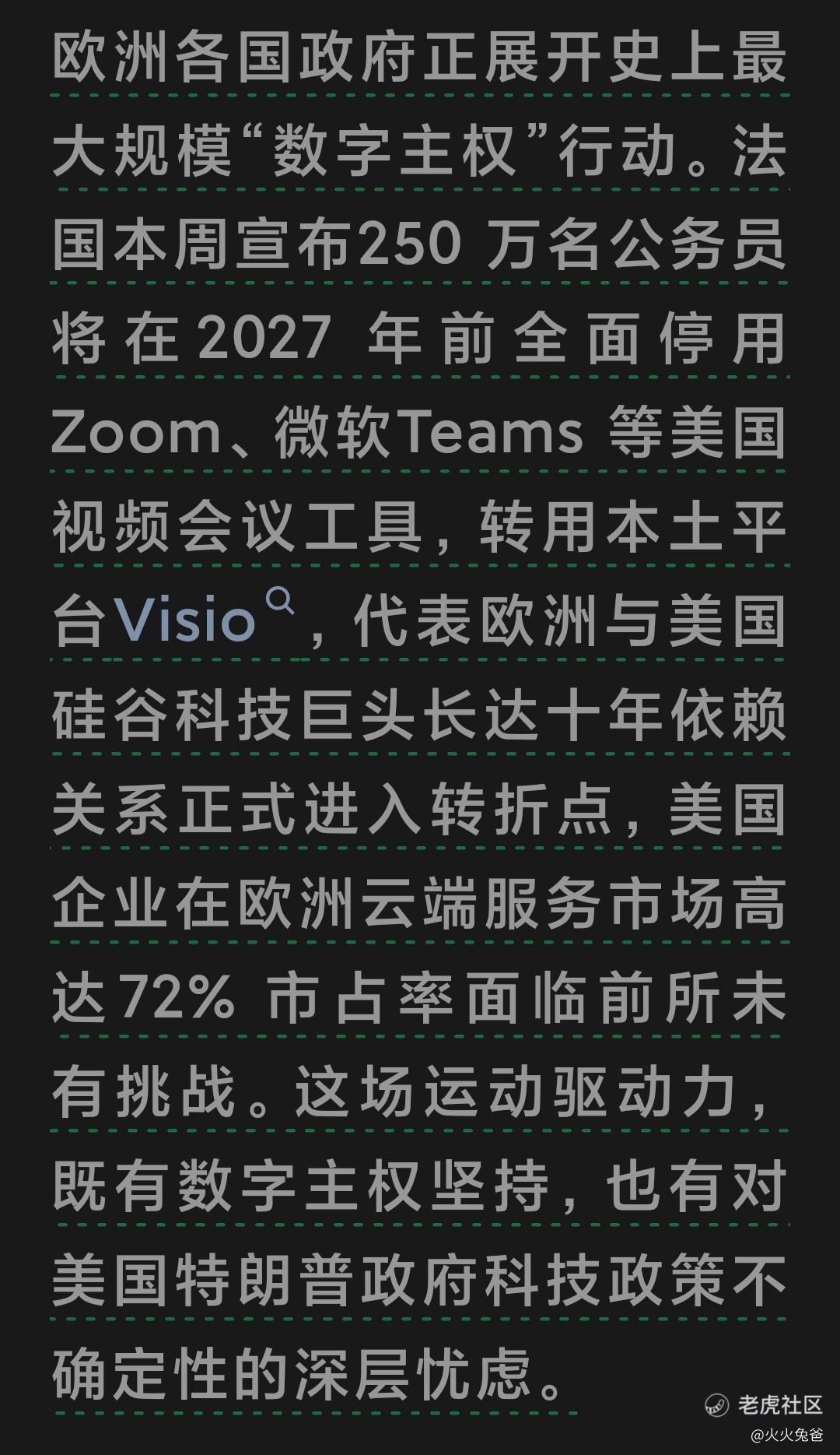- 特斯拉多头·02-09 23:22欧洲已经错失了整个互联网时代,对于Ai数据公司要么选择美国要么选择东大,自力更生没有人才没有配套产业链已经不现实了,数据安全上他们不太可能选择东大。其实整体上只是在拉扯和讨价还价。造车智能花改造大众可以选择小鹏,但是B端数据化大型企业东大其实也没有这个生态。东大不可能诞生PLTR。LikeReport