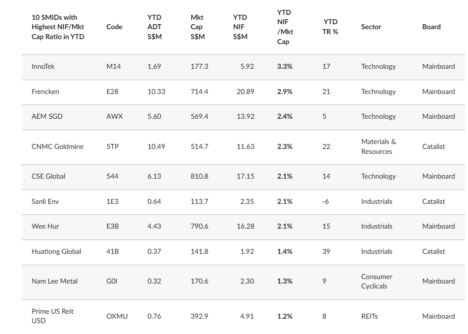 Net Institutional Inflows SMIDs: InnoTek, Frencken, AEM and CSE