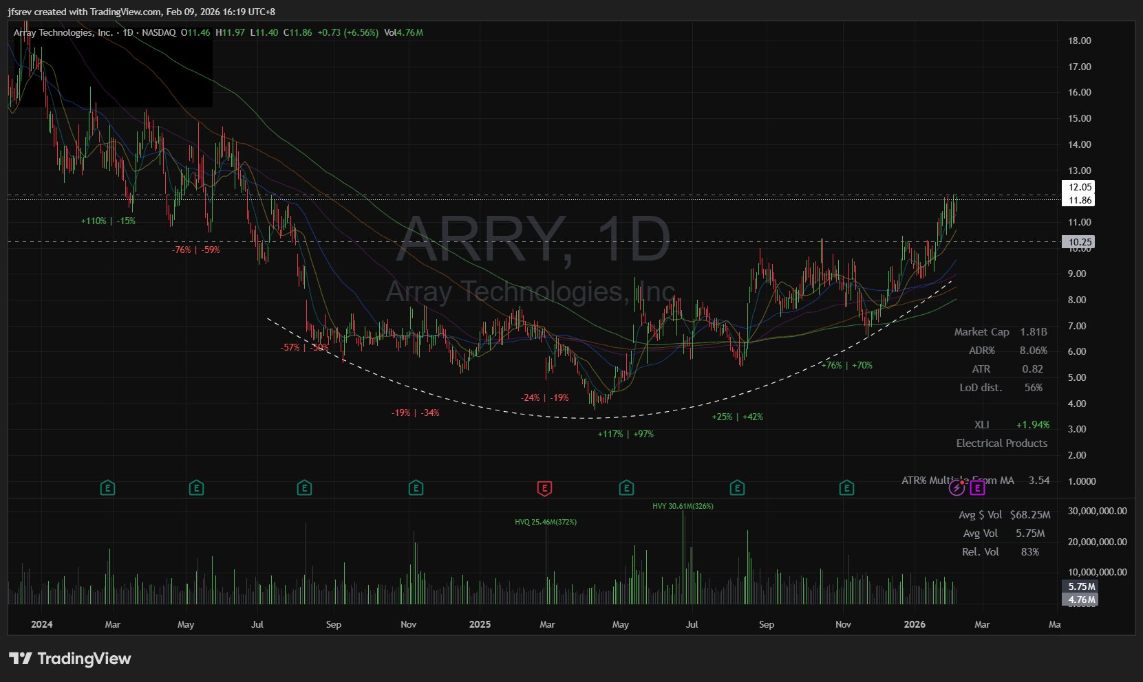 $Array Technologies Inc.(ARRY)$ - Relative Strength Leader Forming a 19-Month Rounding Base with Nett Institutional Inflows
