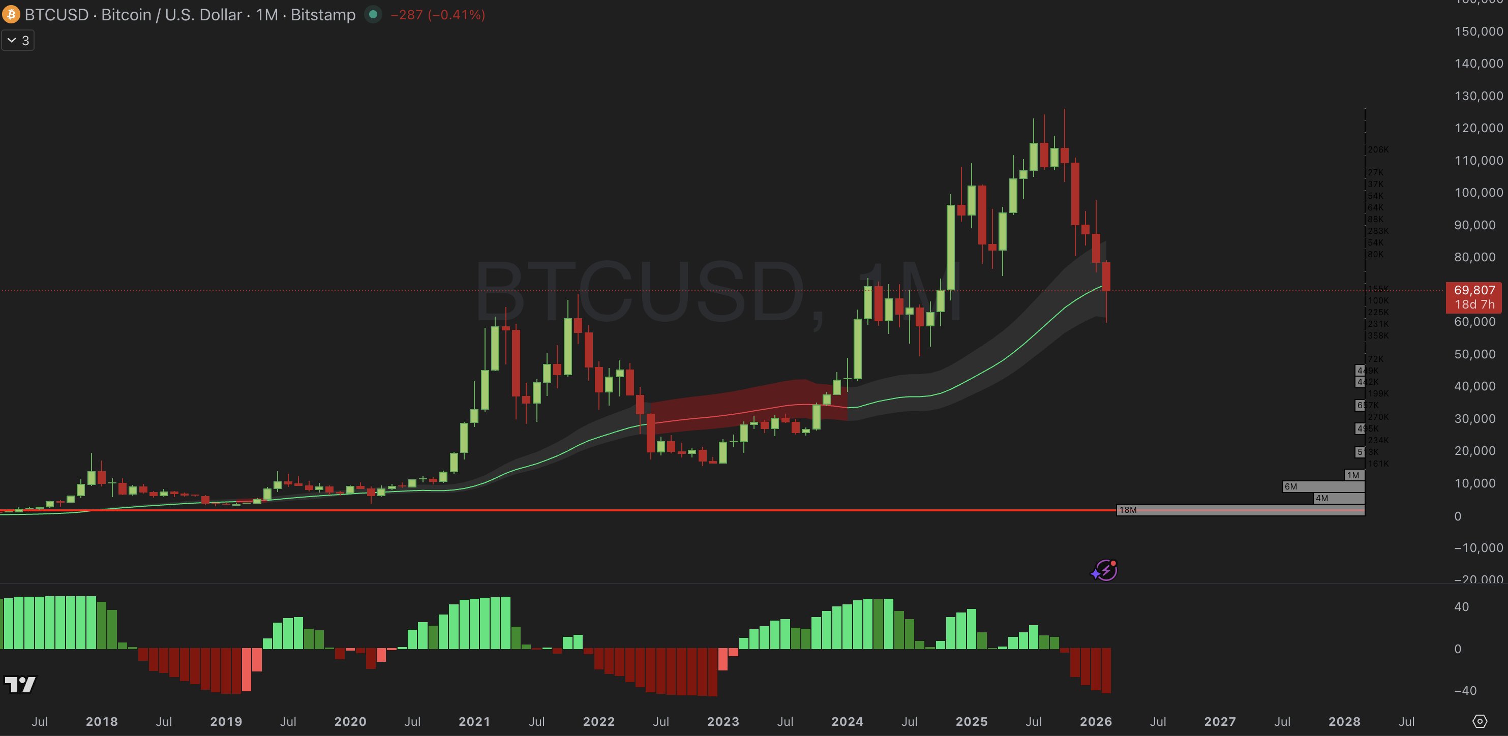 BTCUSD hit the 70K downside target I mapped out and is now sitting on major Monthly Bias support.