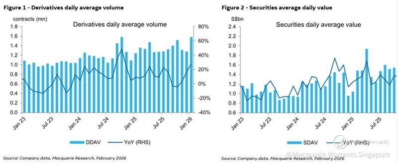 ✍Macquarie Research (MQ) published a research report yesterday on 10 February summarising SGX’s latest January stats, their rating and share price target