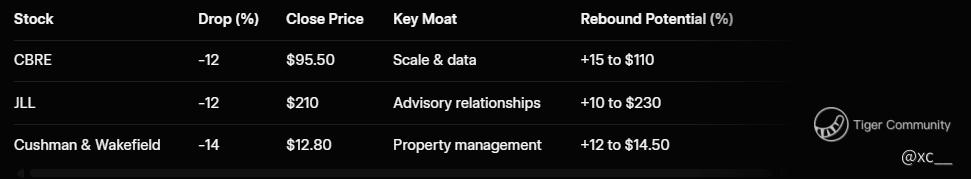 Real estate services stocks got hammered as "AI fear" spread like wildfire, with CBRE Group and Jones Lang LaSalle both plunging over 12% in a single session, while Cushman & Wakefield dropped 14% β the biggest rout since the 2020 Covid meltdown. π€ This sell-off stems from investors freaking out over AI agents that can whip up valuation reports, contract summaries, and due diligence in minutes, chipping away at the informational edges that have long powered these multi-billion-dollar firms. The terror goes deeper: if AI slashes white-collar jobs and shrinks office demand permanently, could the entire real estate ecosystem face a structural collapse? Yet, cooler heads at Barclays and Jefferies call it pure panic, noting the plunge overstates immediate risks to complex dealmaking. With the sector shedding billions in market cap, is this AI hype an overreaction, or the beginning of a brutal shakeout for services giants? Let's dissect the chaos, weigh the threats, and spot if this dip's a golden buy or a black hole to avoid. πβ οΈ