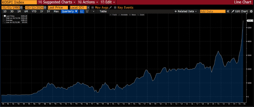 Even with the KOSPI index approaching 5,500, Wall Street remains optimistic about its trajectory this year. JPMorgan expects it could rise as high as 7,500—representing 36% upside from current levels!