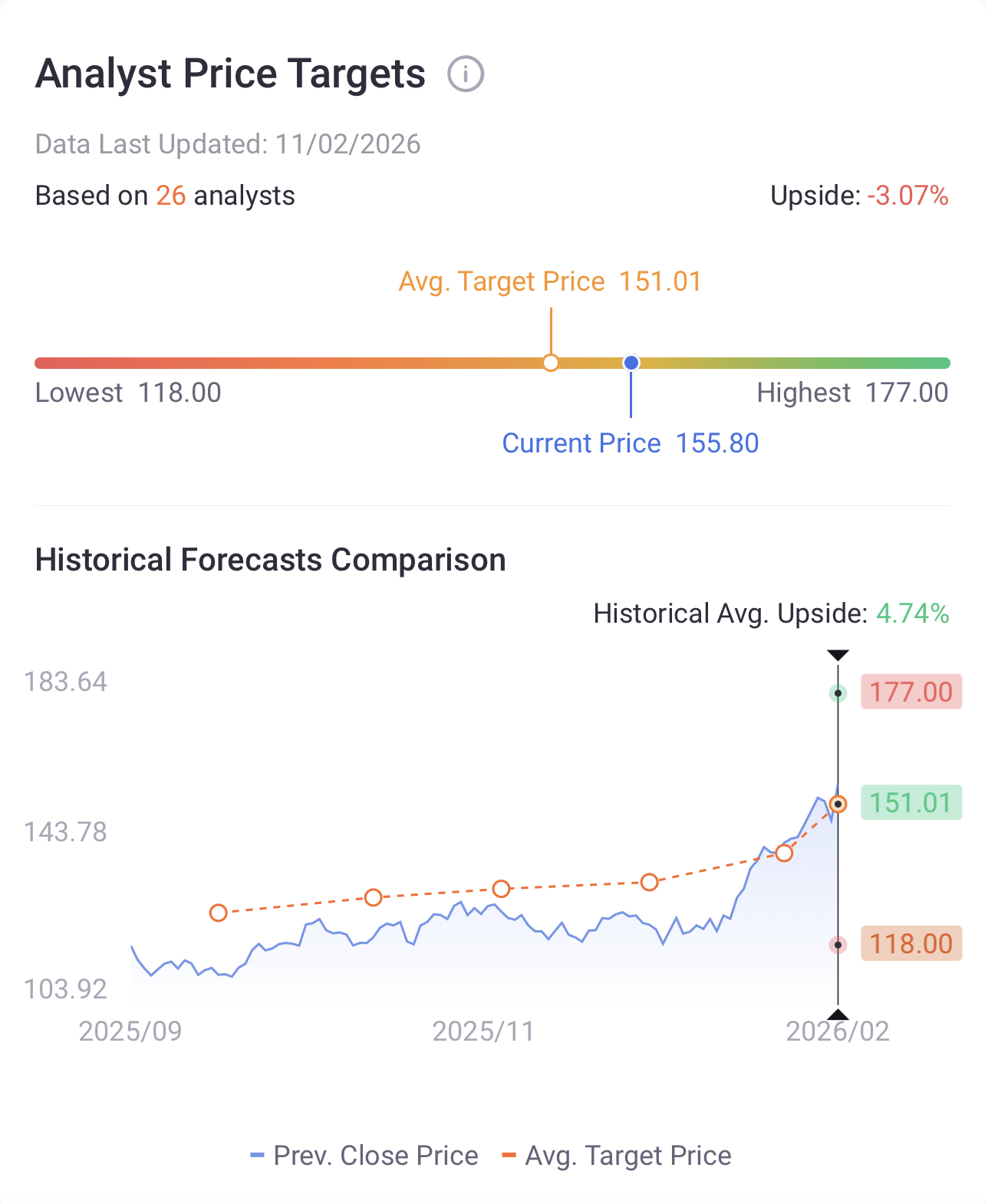 Financial Highlights: In FY2025, Corning reported revenue of $14.2 billion (up 12% YoY), net income of $1.1 billion ($1.28 EPS, adjusted $2.15 EPS beating estimates), generated $2.8 billion in operating cash flow and $1.9 billion in free cash flow, returned $1.4 billion to shareholders through dividends and buybacks, achieved 16.5% operating margins, and trades at ~28x trailing earnings with a 2.9% dividend yield while benefiting from strong demand for optical connectivity in AI data centers and Gorilla Glass for automotive applications.